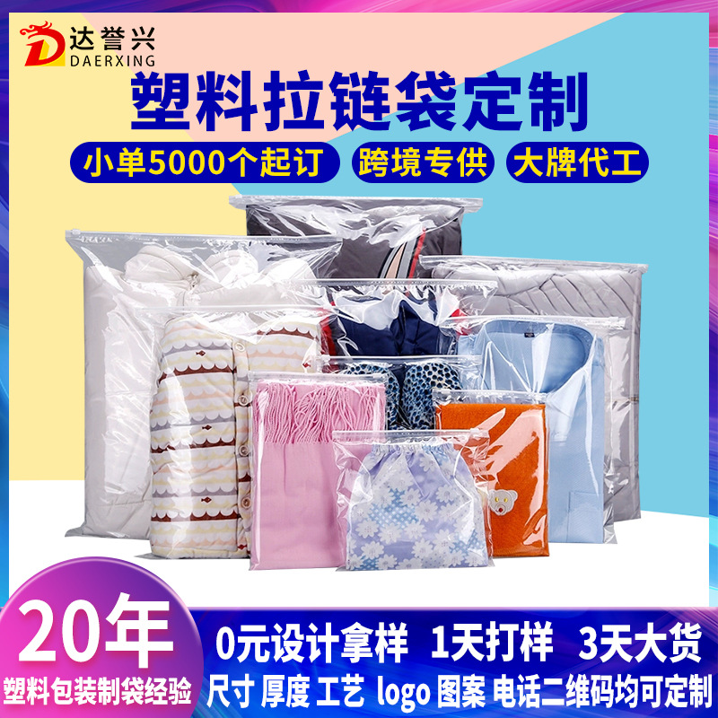 アクセサリープラスチックジッパー袋カスタム透明フロスト靴靴下包装袋印刷パターン文字服装ジッパー袋