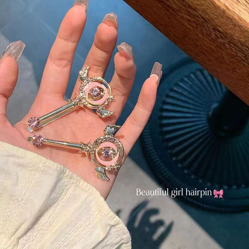 魔法の棒のヘアピンの日本のかわいい少女の心のヘアアクセサリーの縁に前髪を挟みます。
