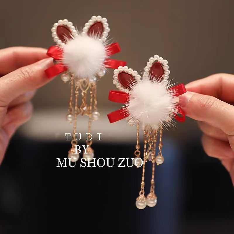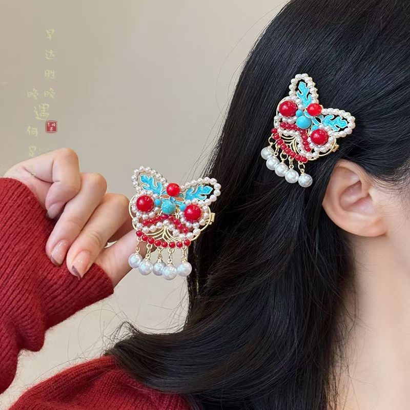 メーカー直販2024新新年子供の赤いヘアピンの女性の髪飾り新年の漢服の髪飾りがライオンの国風側を目覚めさせた