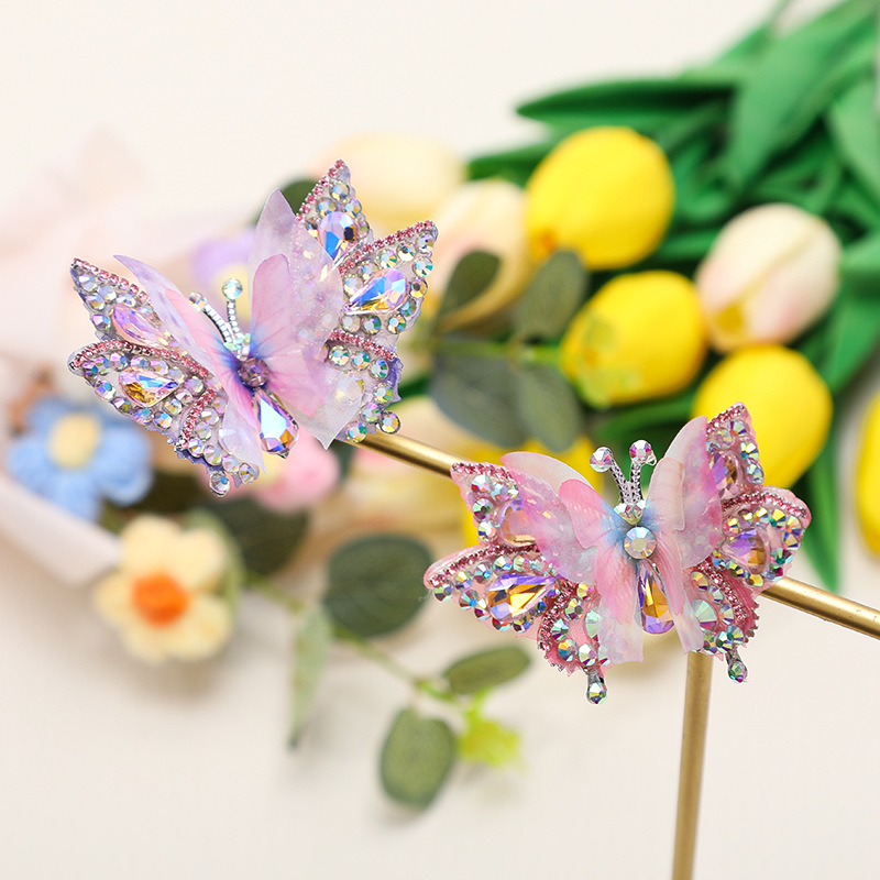 2024新作能动プリンセス蝶ヘアクリップファンタジーカラークリスタル女の子ヘア女の子