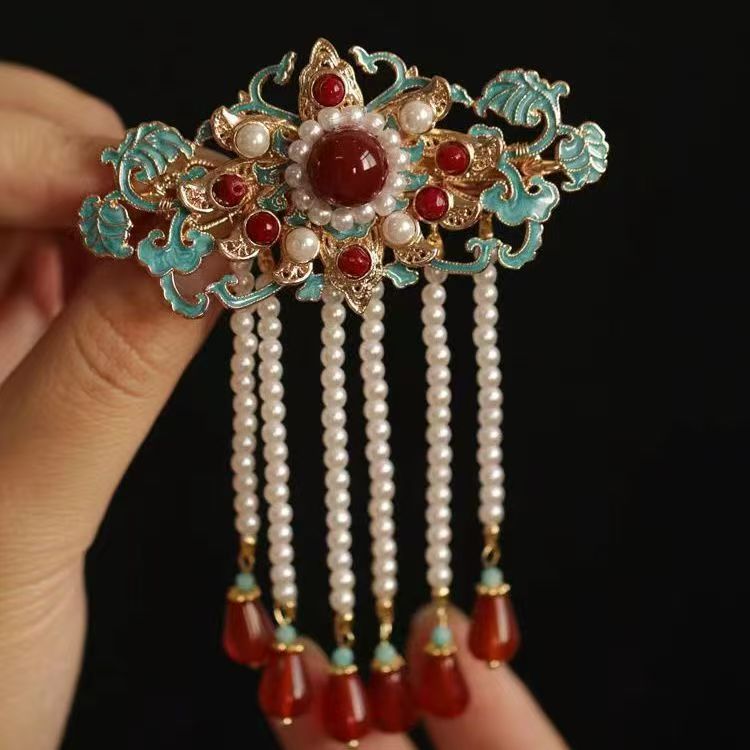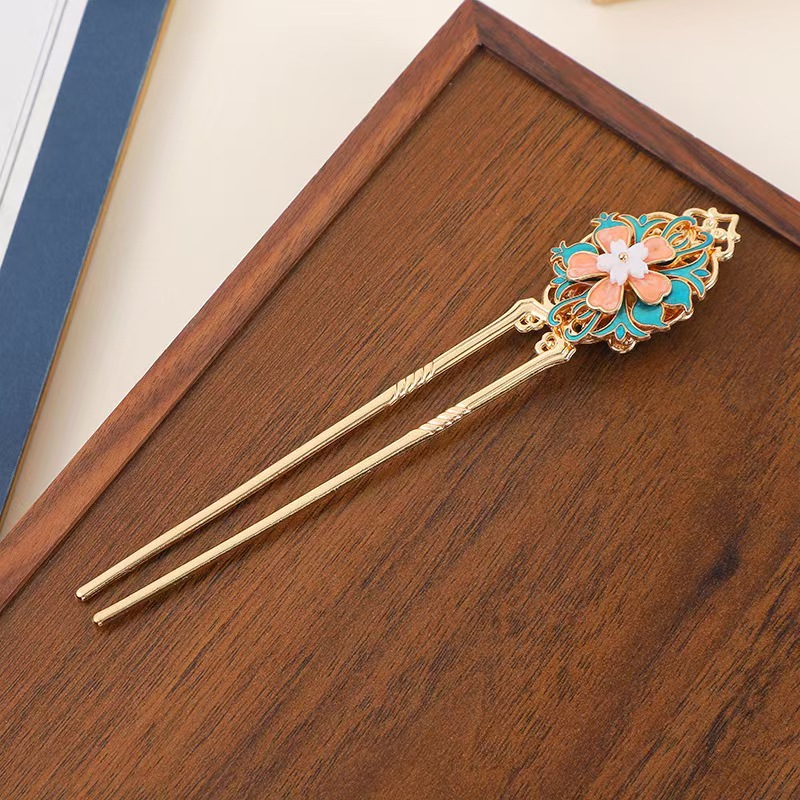 秋月春唐風高級ヘアピン明製漢服焼藍小花ヘアピン
