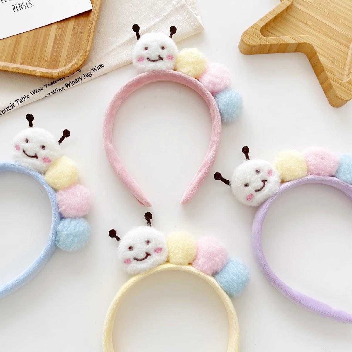 かわいいぬいぐるみの毛虫のカチューシャは顔を洗って甘いカチューシャをいじります。