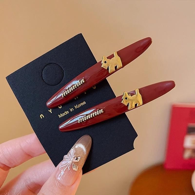 女性用赤文字子犬ヘアピン、高級ワンラインヘアピン、サイド前髪クリップ、額の短い髪のアヒルのくちばしクリップ