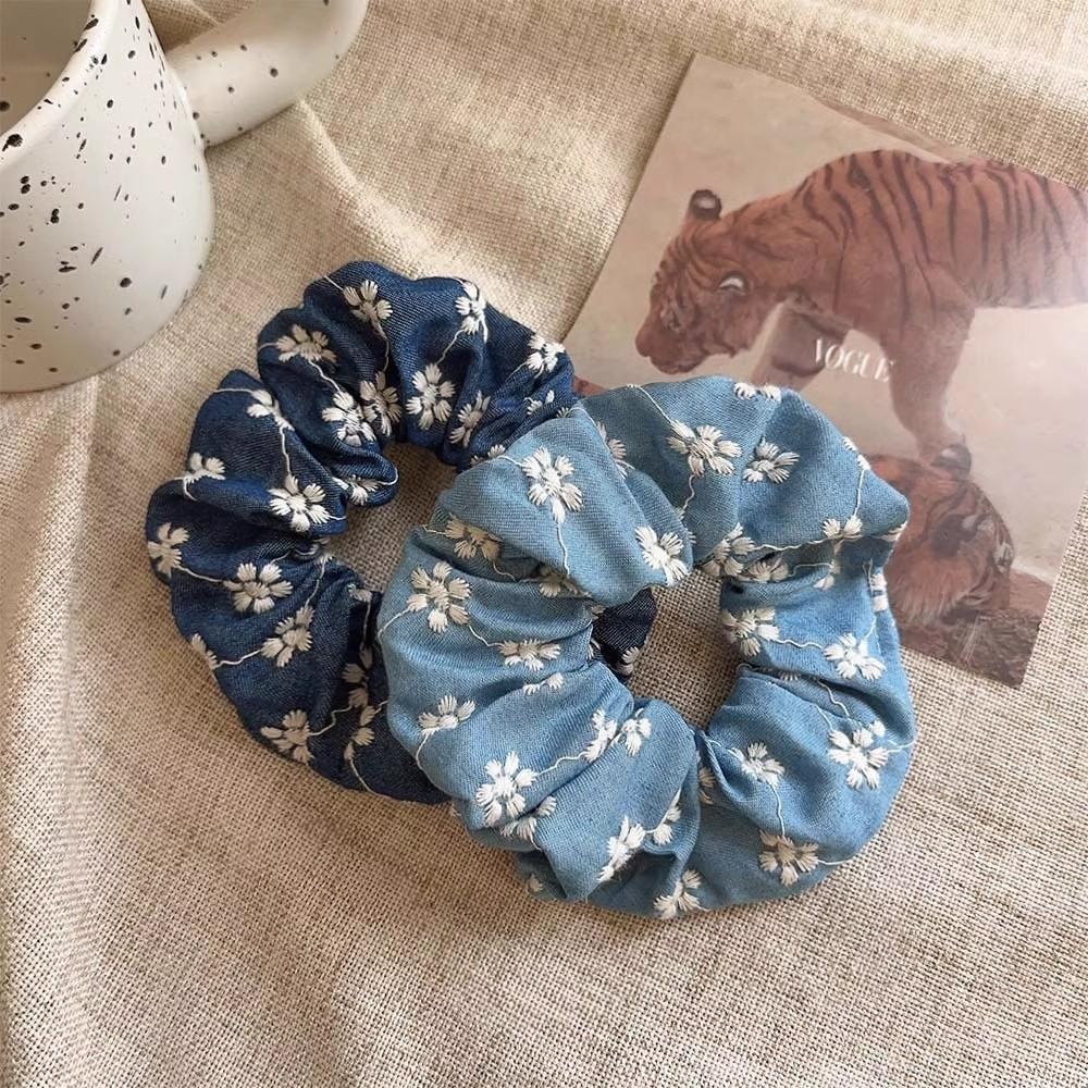 レトロブルー花柄インヘアバンドフレンチロマンチックデニム刺繍フラワーヘッドフラワーリンゴン女性用ラージヘッドフラワー