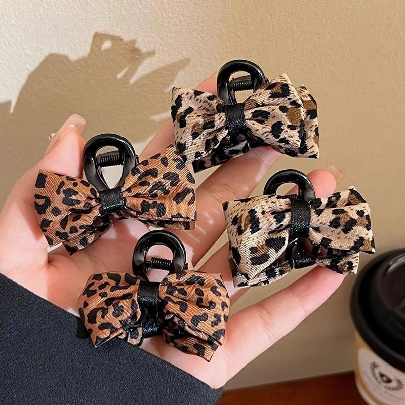 レトロヒョウ柄リボンスモールクリップ女性用多用途プリンセスヘッドスモールシャーククリップサイド前髪ヘアピンヘッドドレス
