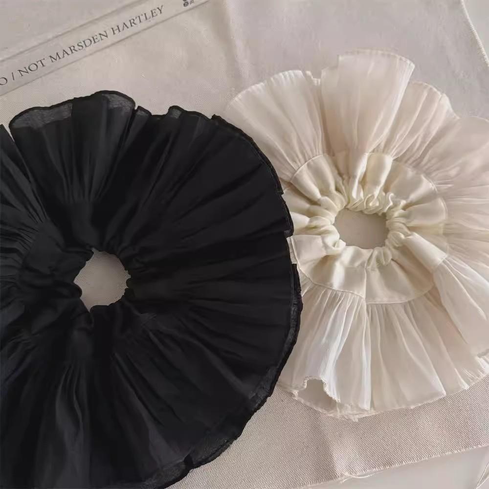 特大プリーツ二重層ヘアリング、高級白黒カチューシャ、万能ヘアアクセサリー、シンプルなヘアリング、新しいスタイル
