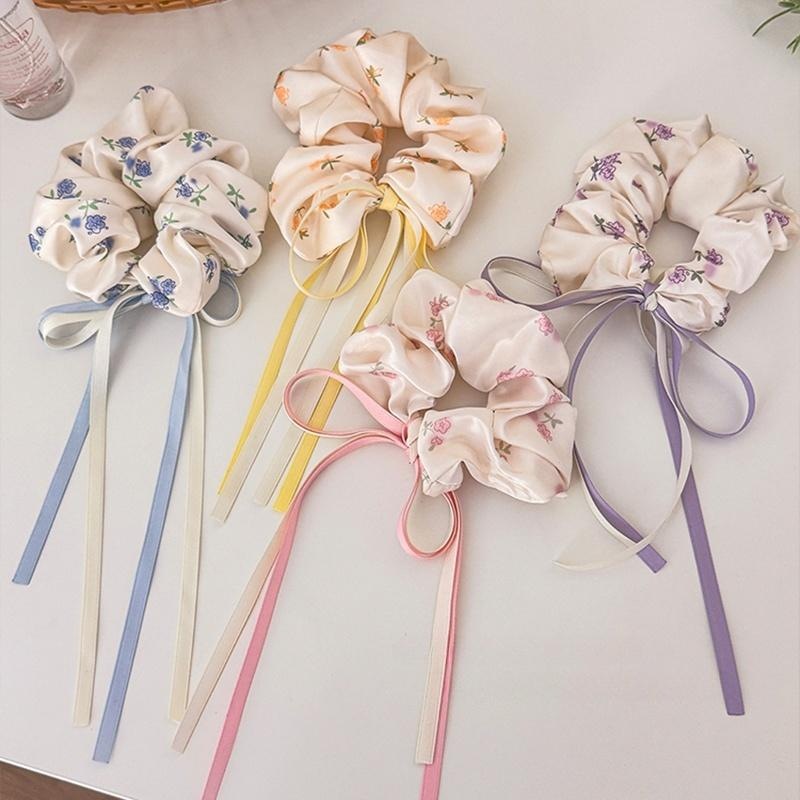 春のリボンリボン花大腸ヘアバンド女性のヘアロープポニーテールヘッドロープ雰囲気ゴムバンドヘアアクセサリー