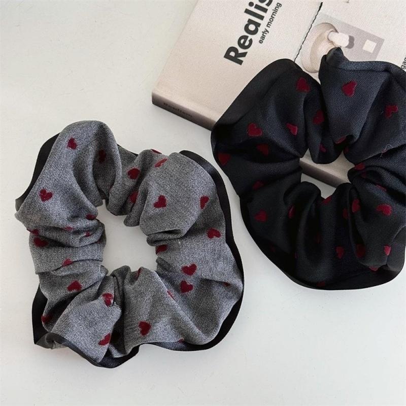 甘くて優しい!黒縁のラブヘアゴム!ラブドット大腸ヘアゴム、高級感と気質、多用途なヘアスタイル