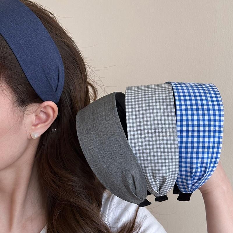 女性のためのブルーチェック柄つば広ヘッドバンド 2025 新しい歯付き滑り止め洗顔ヘッドバンドヘッドバンドヘアバンドルシンプルな帽子