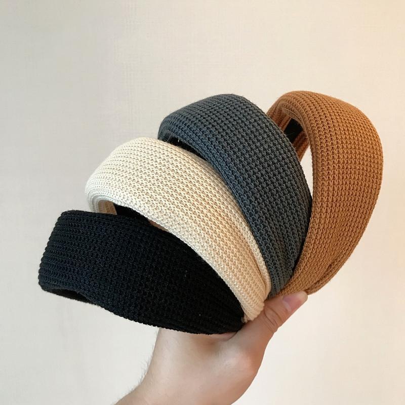 2024項の編みカチューシャのレトロな純色のニットの広い辺のカチューシャは百合の気質のシンプルな大気のカチューシャになります。