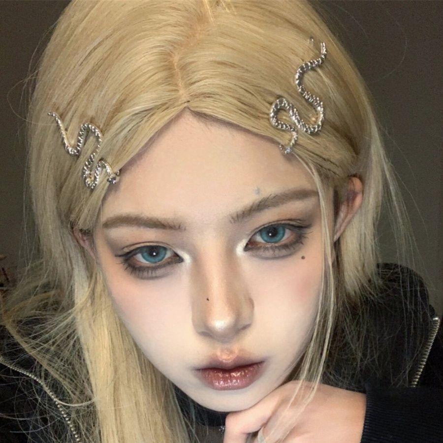 高級感蛇形ヘアクリップ前髪ヘアクリップサイドクリップダークブラック風ギャルヘアアクセサリー