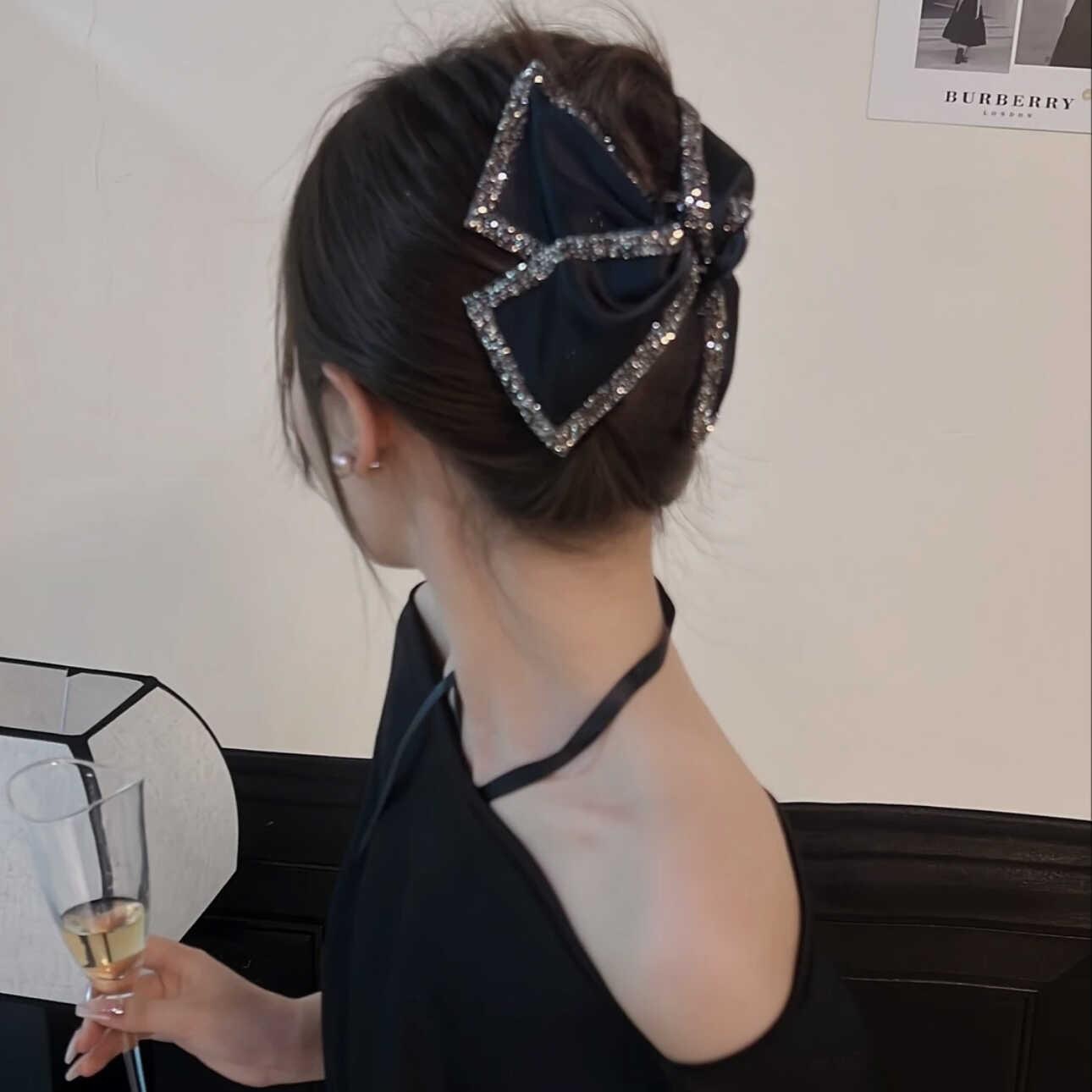 赫本風高級感黒蝶ネクタイ女子2024年新後頭部飾りファッションサメクリップ