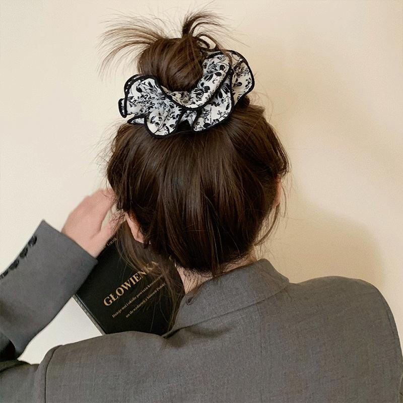 クリームドーパミン夏清新髪輪甜妹少女心髪飾り網糸純色大腸輪通気ゴム筋