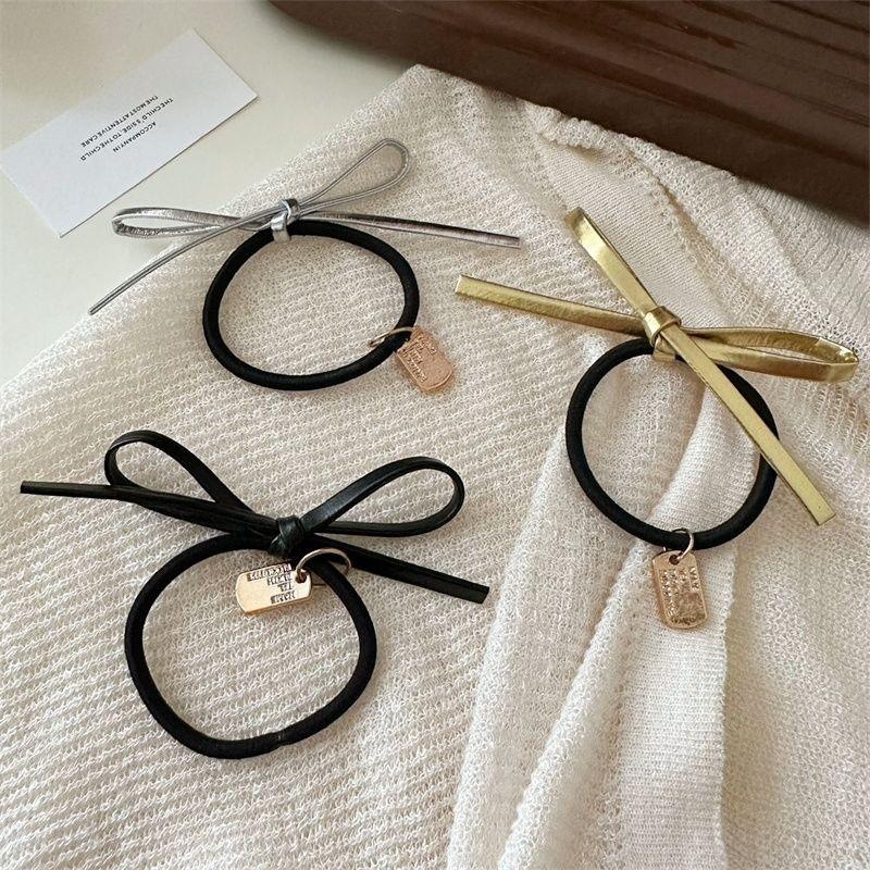 2024新型の蝶結びの皮筋に馬の尾のシンプルな頭縄のファッションのアルファベットの輪の日常の団子の髪の毛の縄を合わせます。
