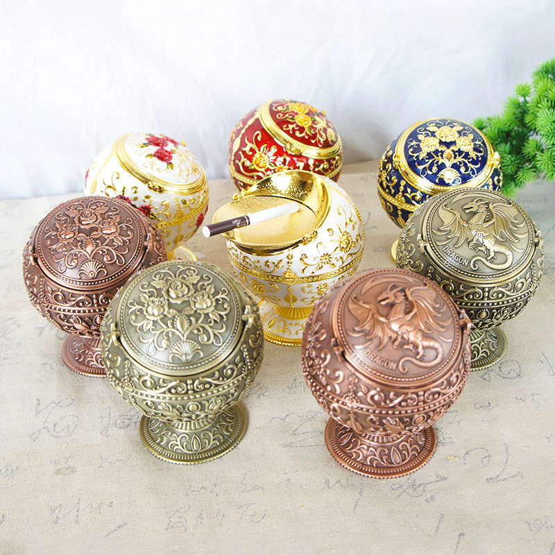 創意バラの龍蓋灰皿青古紅古色絵現物の家庭装飾品金属工芸品旅行