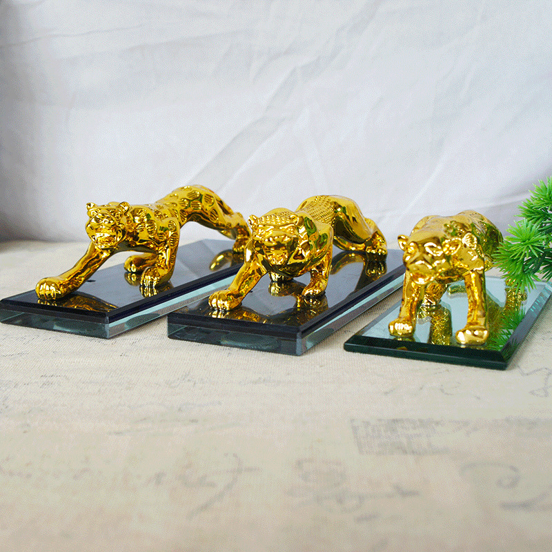 樹脂工芸品首振り虎豹模型置物金色大気家庭置物振音ネット赤背景