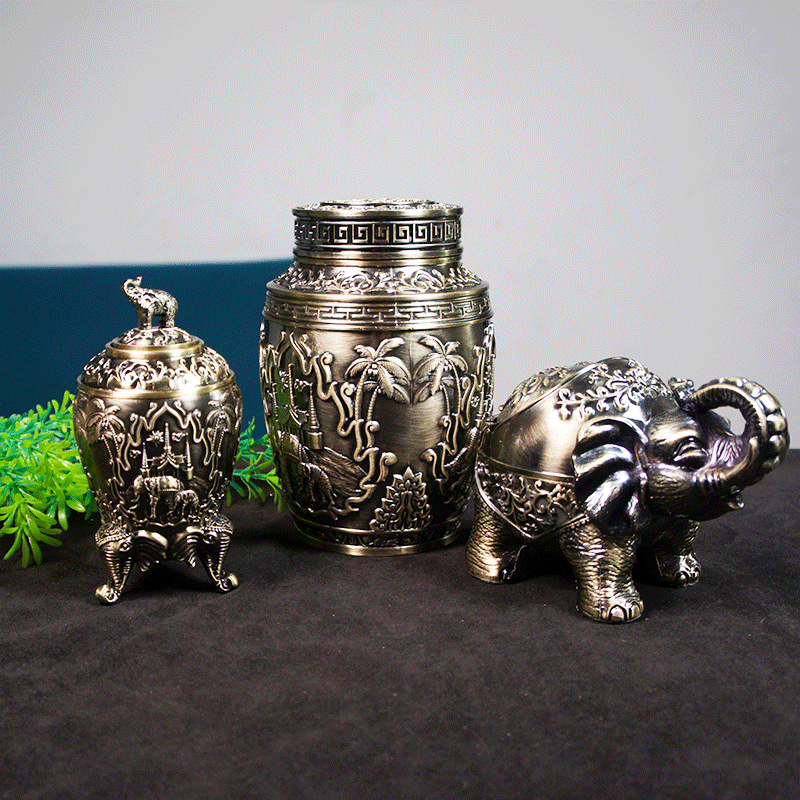 新しい象灰皿茶缶つまようじホルダーコンテナ東南アジアスタイルの金属家の装飾装飾品ギフトギフト