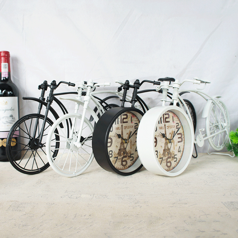 耀莎の規格品は復古の自転車の模型の時計を輸出して子供のプレゼントのベッドの頭を飾って直播室の背景を飾ります。