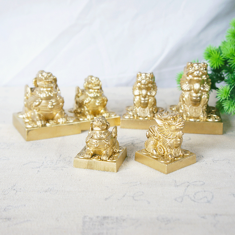黄銅の三足の金のヒキガエルの如意のそろばんのカニのはさみの元宝のベルトの竜のブランドの小さい置物の人気がある製品の現物の規格品