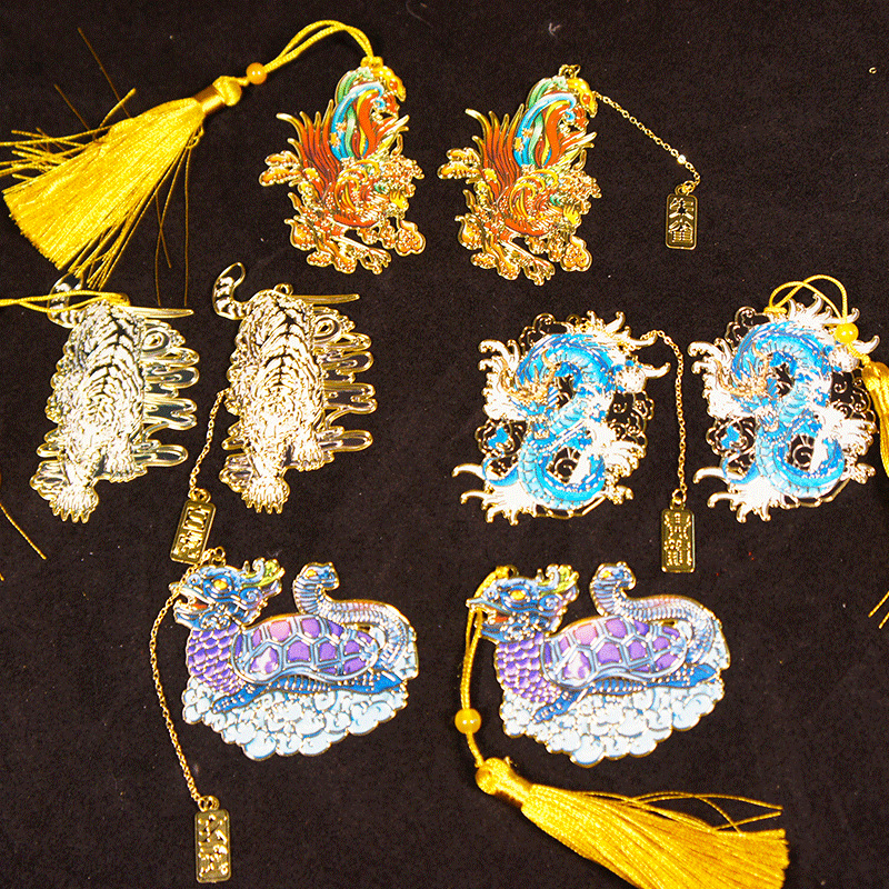 四聖獣シリーズの青龍白虎玄武朱雀のしおり金属は子供の目上の文化文化旅行商品を送ります。