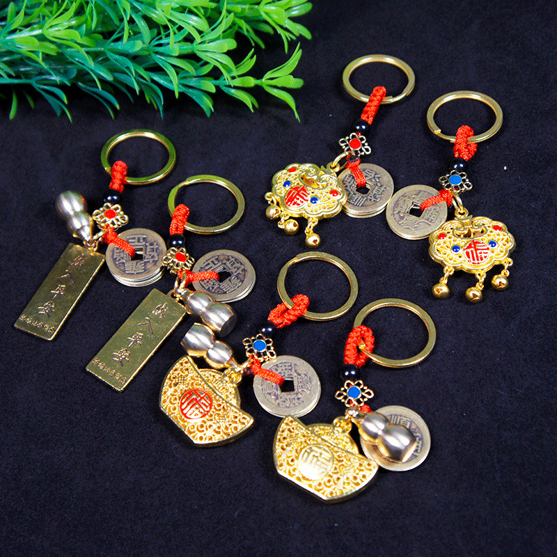 真鍮のレトロな鍵は心経六字の鈴のヒョウタンの五帝のお金の蛇口の口笛の鍵はペンダントのキーホルダーを掛けます。