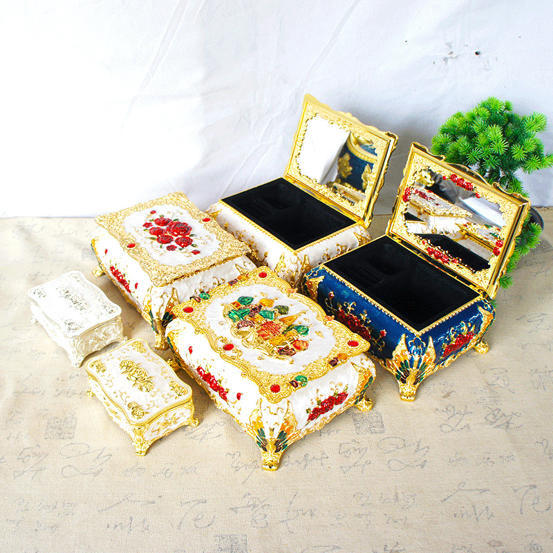 新型ヨーロッパ式金属バラのアクセサリーケース鏡付き創意指輪ネックレスイヤリングジュエリー収納ケース結婚