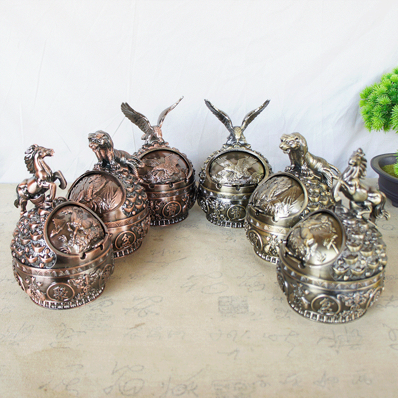 新しいドラゴン、ヘビ、馬、イーグル、タイガー、金属灰皿、干支レトロ灰皿、蓋付きオフィス灰皿