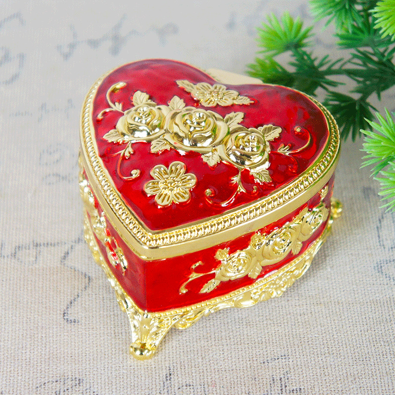 出荷価格の新しいトランペットハート型薔薇ジュエリーケース家庭金銀ジュエリーピアスネックレス収納ケース金属