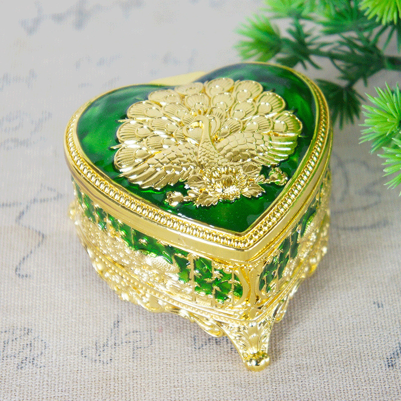 新型トランペットハート型孔雀アクセサリーケース合金メッキ手描き金属工芸品収納神器現物直髪
