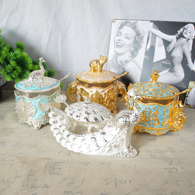 金属手描きシュガーカップ孔雀象クラウンスタイルホームキッチン用品ホテル撮影小道具クラフト