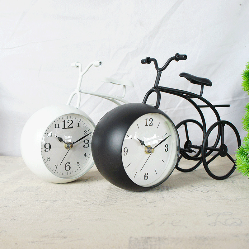 ミニ三輪自転車時計模型は先生の恋人にプレゼントする金属工芸品の装飾品を飾っている