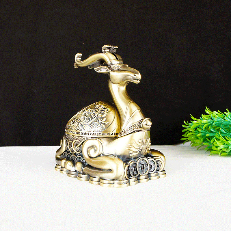 レトロな金属の創意招財神鹿の灰皿の装飾品の置物の軽い豪華な客間の家庭の潮流の事務の灰皿