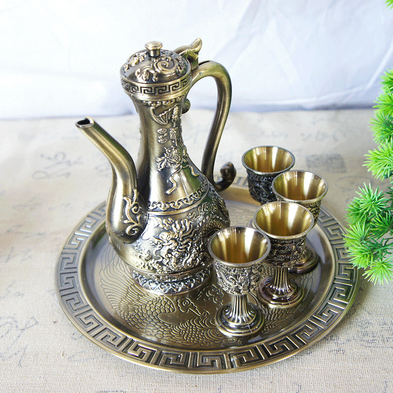 金属のレトロなバラの百福の竜鳳の酒の道具のスーツの合金の家庭用品のドラマの震える音の速い手の背景の装飾