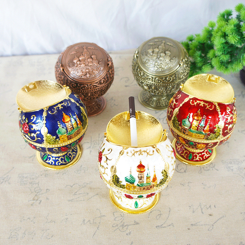 クリエイティブ地球形バラ城灰皿カラーオプションで家庭装飾品旅行工芸金属を開閉できる