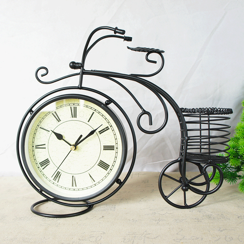 金属手作り三輪自転車模型時計付き工芸家庭装飾品筆立て棚
