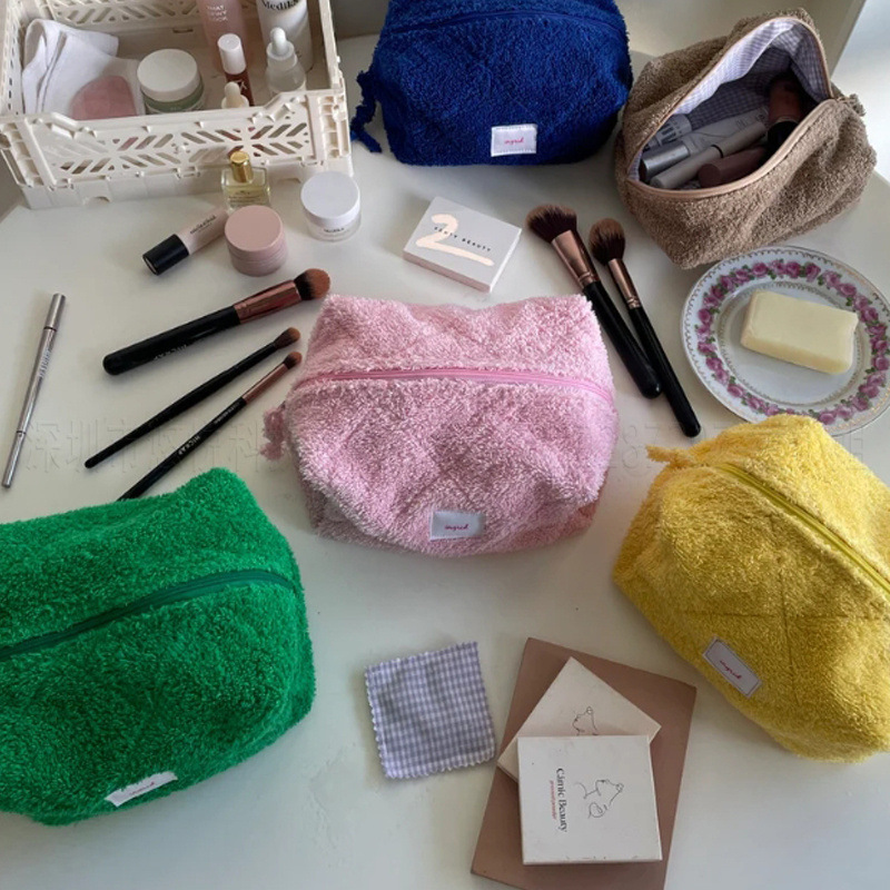 個性タオル布化粧バッグ旅行大容量化粧品収納バッグ個性ファスナー洗面バッグドーパミン色