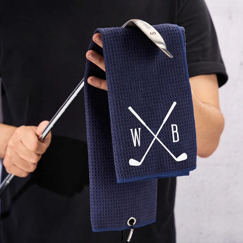 新商品のゴルフクラブのボール拭き布の個性刺繍のパター拭きバーのタオル布の携帯はゴルフタオルを掛けます。