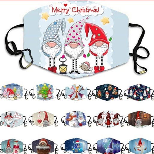 クリスマスの水洗いできる成人綿マスク冬の保温国境を越えたプリントサンタクロースマスクはエレメントを入れることができる