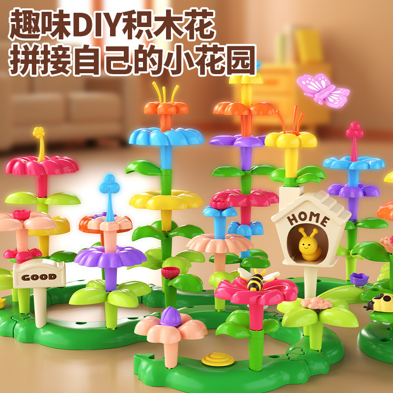 漫画の楽しい DIY ビルディングブロックフラワーアレンジメントさまざまな庭 - 子供の教育パズルスタッキングおもちゃ