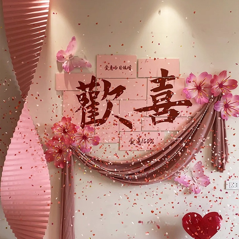 結婚式の部屋の雰囲気装飾セット結婚式の背景の壁の装飾壁ピンクのハッピーな言葉 KT ボード結婚式の新しい家寝室