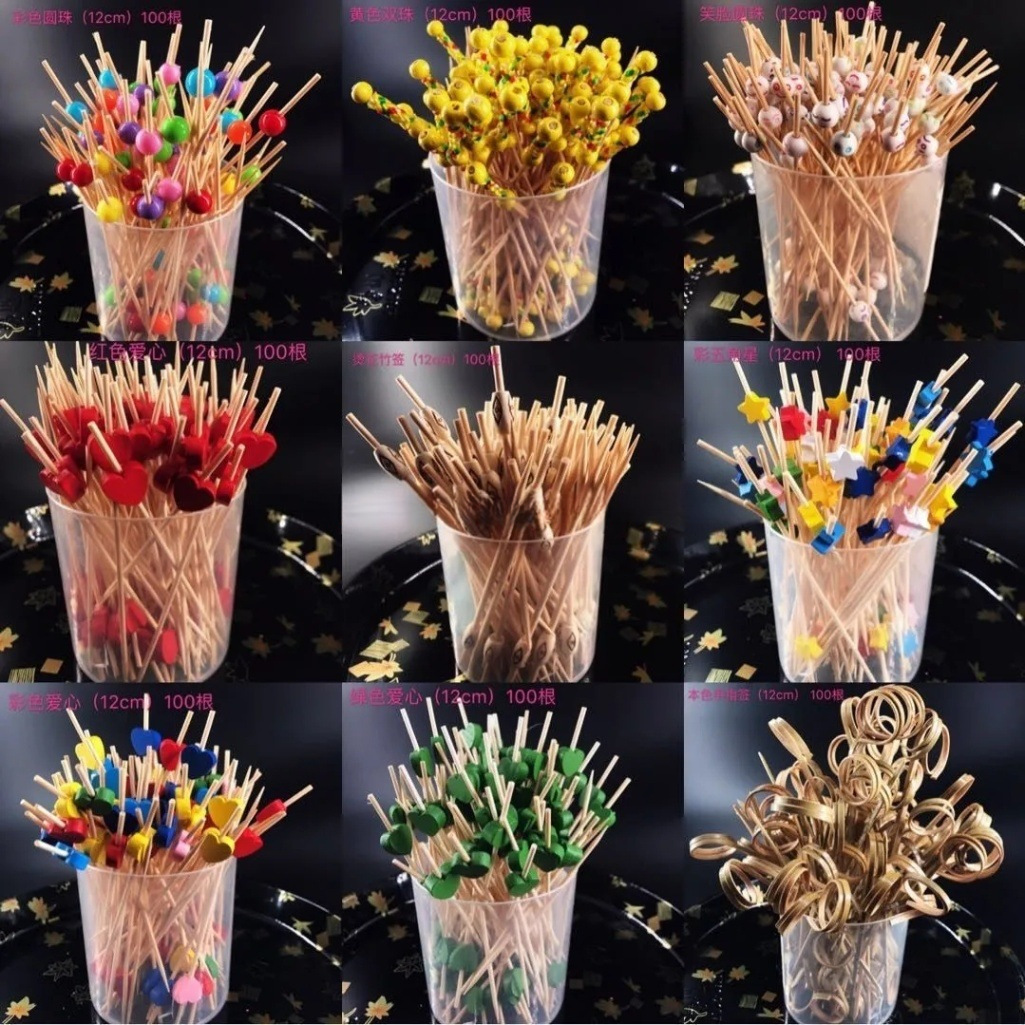 使い捨てフルーツピック、竹ピック、フラワーピック、フルーツフォーク、クリエイティブアートつまようじ、カクテルピック、バーガーピック、フルーツピック、送料無料