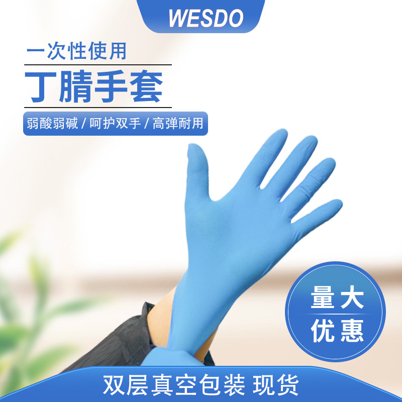 使い捨てニトリル手袋高弾無粉指麻左右手通用ゴム青色検査手袋耐久型