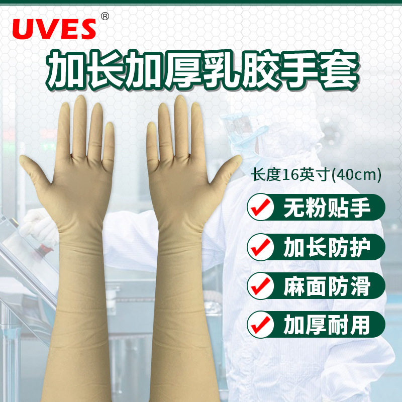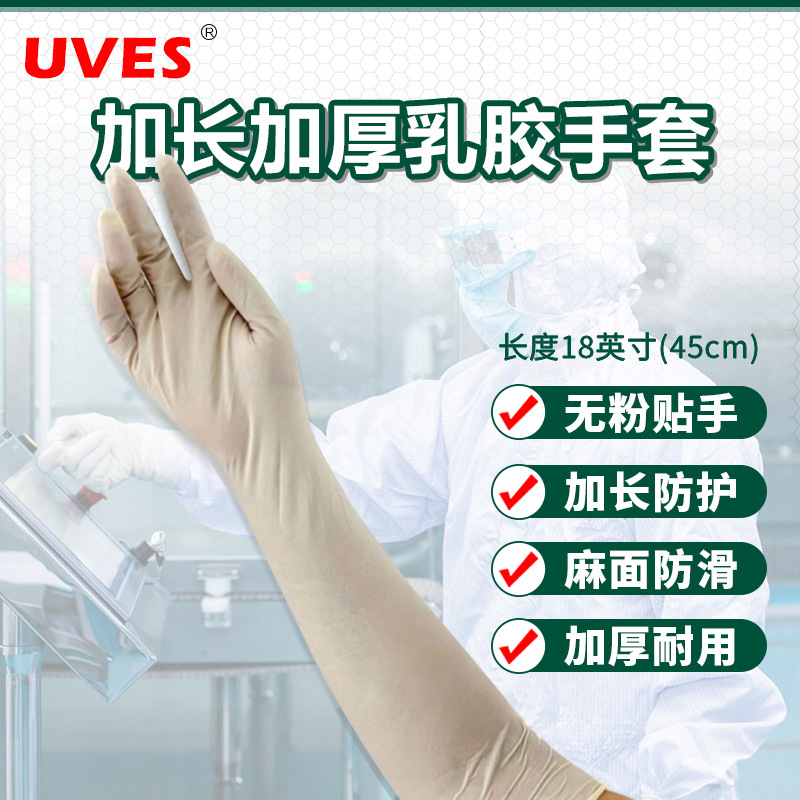 Uves使い捨てラテックス手袋厚手延長手袋高弾無粉18インチ45cmゴム手袋