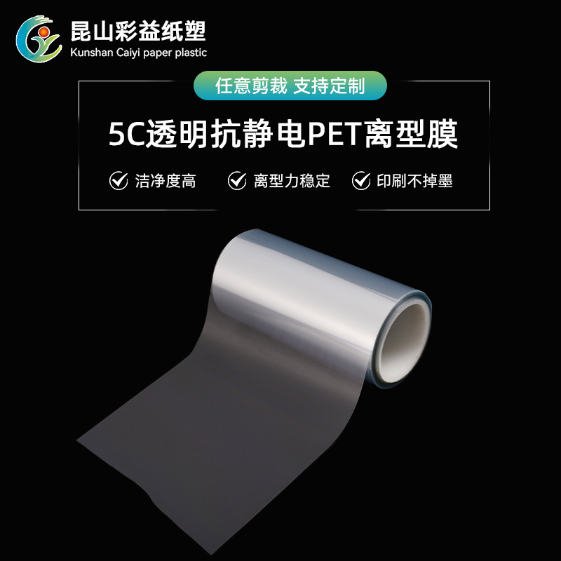 5c透明帯電防止PET離型膜電気シリカゲル耐高温防塵防掻膜離型ダイカット