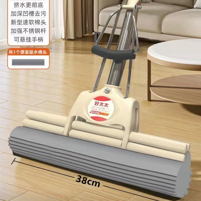 スポンジモップ家庭用大型コロイド綿絞りローラー超吸収性手洗い不要耐久性と強力なモップ