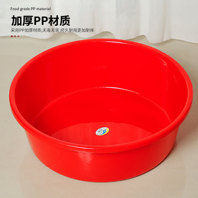 赤いプラスチック製の洗面器、厚みのある丸い大きな洗面器、寮の洗面器、洗濯洗面器、野菜洗い、工業用シーフード、水産物クリンカム