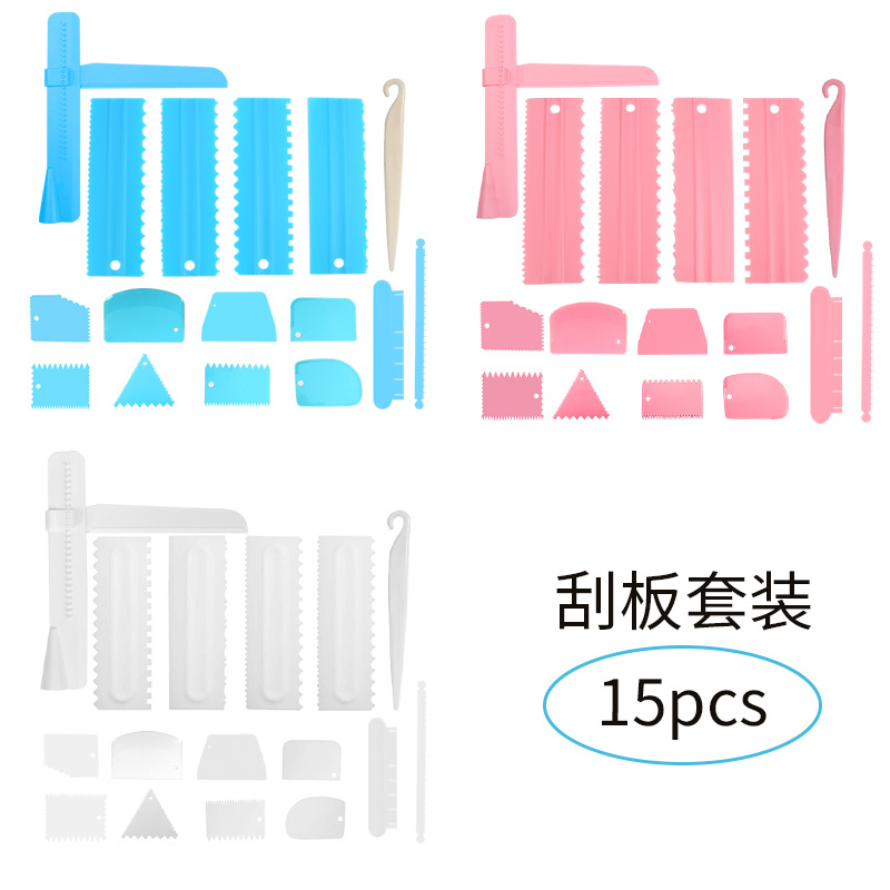 ケーキクリームスクレーパーコーム15点セットプラスチック半円スクレーパーカッターベーキングスナックデコレーションスムージングツール