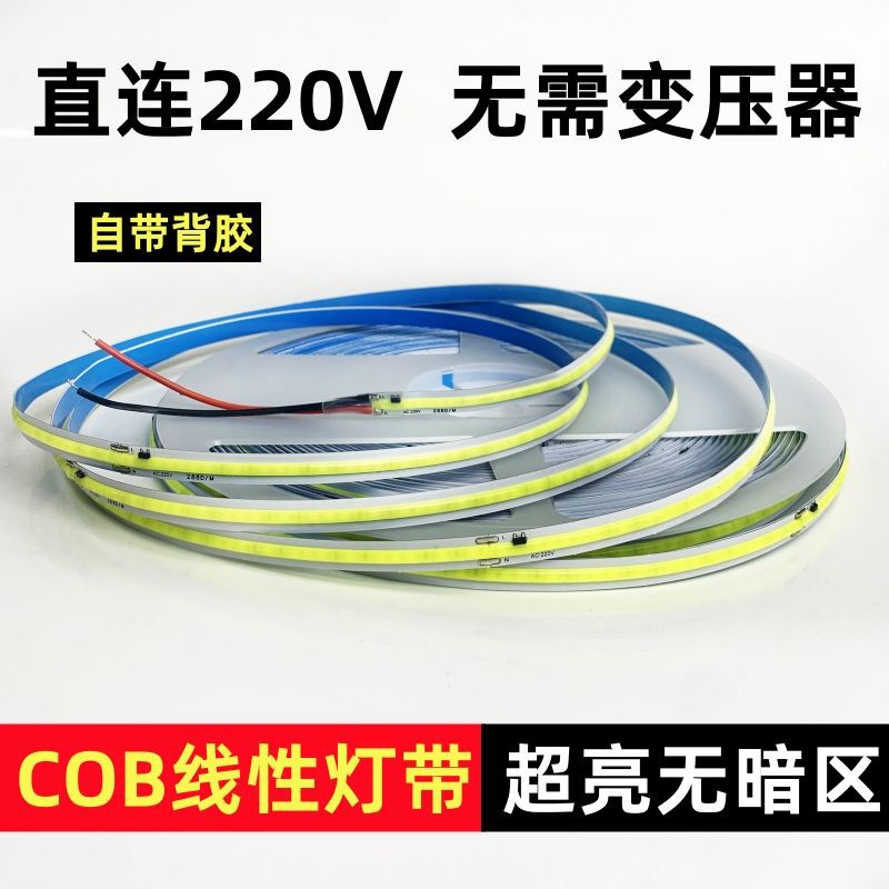 220V メインライトなし背景壁超高輝度 LED 自己粘着リビングルーム天井リニアライトストリップフリードライブ COB ライトストリップ