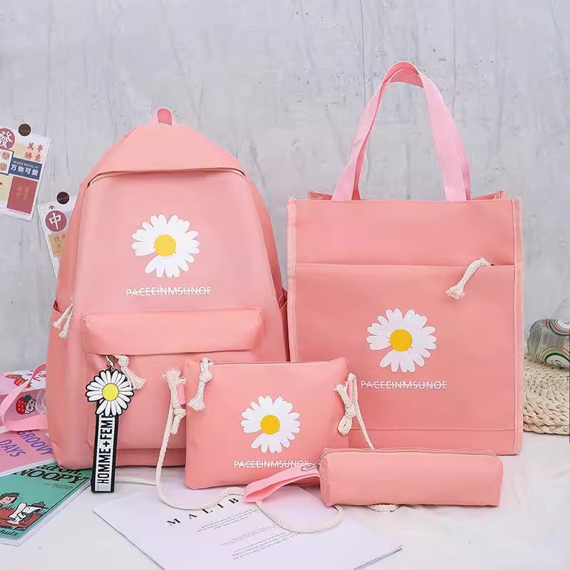 ネットの赤い小さいデイジーのかばんの女子学生の韓国版のキャンパスの中学の小学生の森は4セットの肩のリュックサックの卸売りをします。