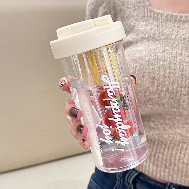 高温耐性ウォーターカップ女の子のための新しい 2025 高価値ストローカップ学生ポータブル茶水分離プラスチックカップ男性のための